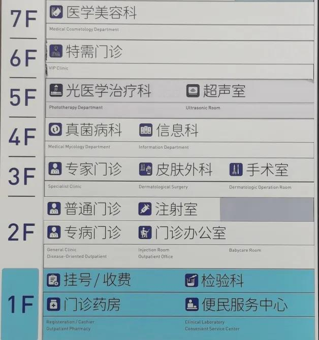 武夷路院区一共有8层,地面七层,地下一层,设有皮肤内科、皮肤外科、中医皮肤科、医学美容科、光医学治疗科、性病科、真菌病科等,开展普通门诊、专家门诊、特需门诊以及专病门诊,所有门诊包括性病门诊均有独立的一对一诊室,绝对保护患者隐私。新院区宽敞舒适,为患者创造了良好的就医环境,记者注意到,各楼层均设置了清晰明确的导诊图,让人一目了然,方便就医。每层都配备了壁挂式或立体式自主服务机,挂号、缴费均可在本层完成。