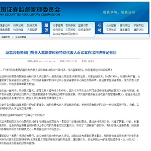 证监会有关部门负责人说,证监会对于此次法院判决表示支持,并将依法监督投资者保护机构,配合法院做好后续相关工作。