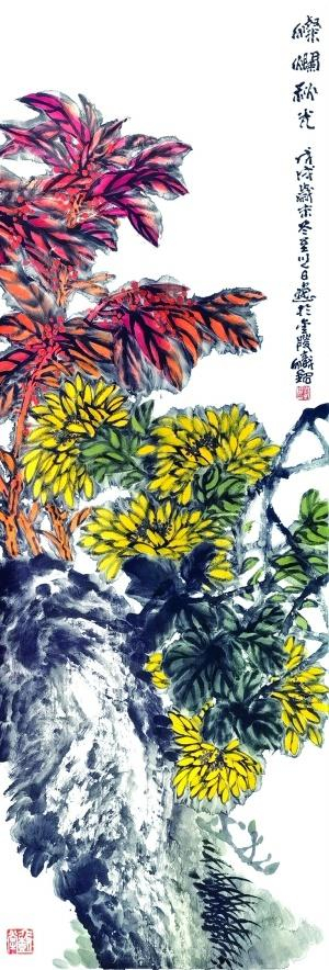 邱炽铭先生的大写意花鸟画就具有较强的艺术冲击力,往往能散发出打动心灵的魅力。你看他的巨幅作品,放笔纵横,浓淡相间,一片神行,大有解衣磅礴之势。散发出打动心灵的魅力。