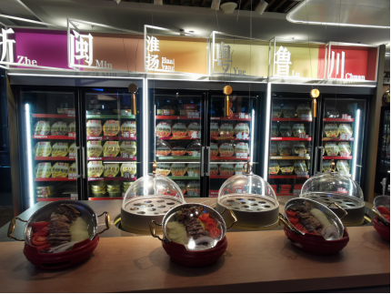 在西贝莜面村北京一家门店,中证君看到,店门口按照浙、闽、淮扬、粤、鲁、川六大菜系设置了“预制菜专柜”,并配备了加工柜台。