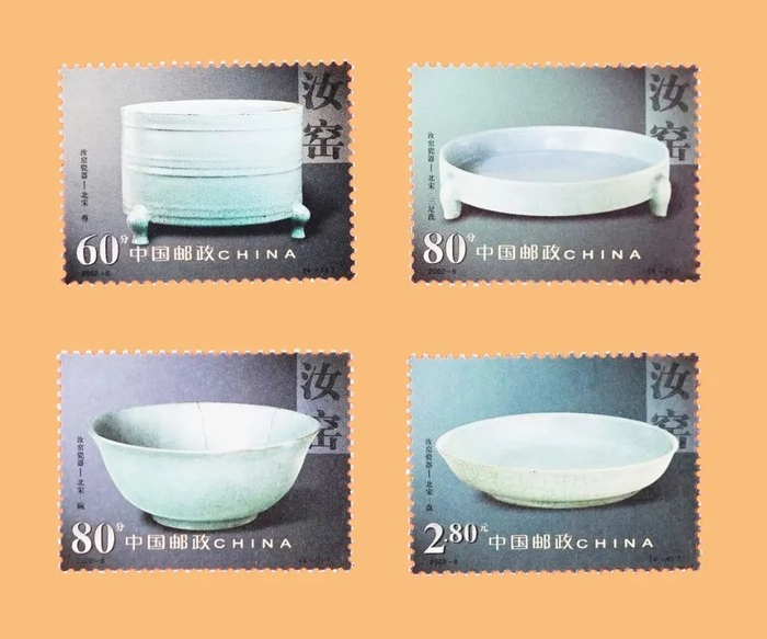 这组邮票素材选自中国汝窑瓷器。汝窑是中国宋代五大官窑之一。该瓷器在南宋时期就很难得,流传至今不足百件,十分珍贵。