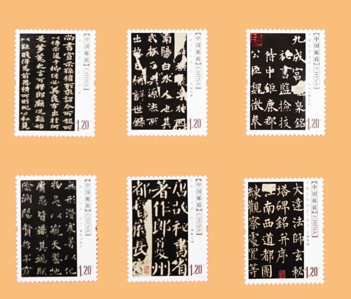 楷书邮票上的图案选自我国楷书史上具有代表性的六块碑帖: