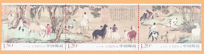 稀世名画《浴马图》邮票不管是设计还是铸造工艺都很讲究。收藏这一套邮票等于收藏了一幅古画,具有很高的艺术鉴赏价值。