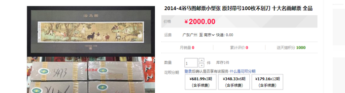 2017年发行的《千里江山图》邮票,目前市场价高达1980元一套。