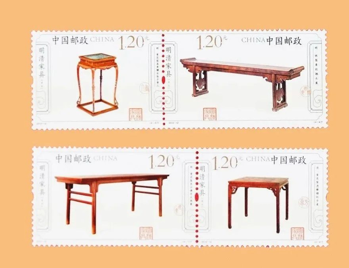 清代家具坐具凝聚着其在特定环境里形成的不同的艺术风格。这套邮票是弘扬中华传统红木家具文化的一个载体,十分珍贵,值得收藏。