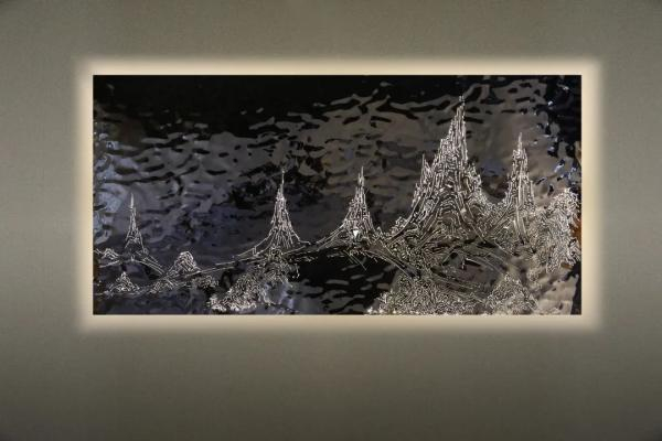 此外,立体三维镂空还转变了作品的观看方式,全息的观看角度在不同场景、不同时间空间的光作用下,显得变幻莫测,也使坚硬的“山体”散发出柔美、神秘的气息。