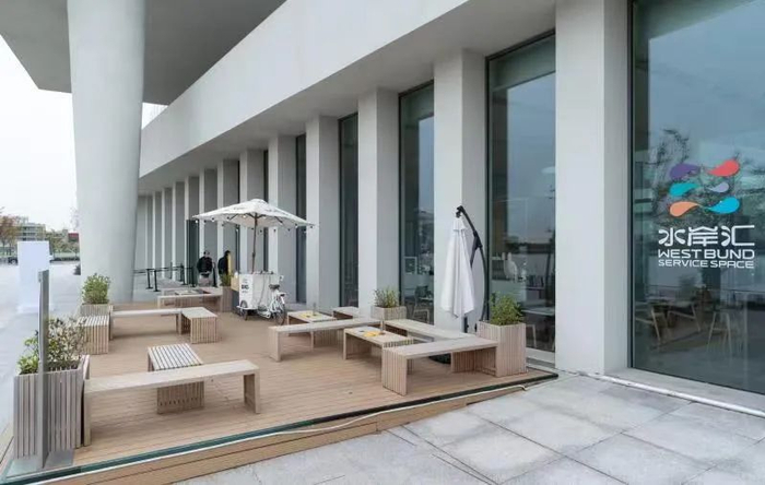 “水岸汇”是为提升徐汇滨江沿线配套设施服务品质而打造的沿江公共服务新品牌,为市民游客提供“休憩、便民、资讯、旅游、党群、应急”六大核心功能,是全新开放的20个公共服务点位之一,提供包含休憩、饮水、雨披、卫生间、母婴室、充电等多项服务。