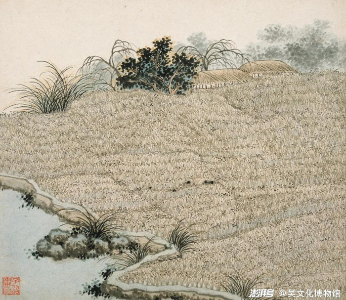 沈周在《稻畦》里将稻禾分解成无数线条和色点,线条是纤细的,色点是浅淡的,这种画法在《麦山》里也出现过。他的用笔之细,恰好是“细沈”的功力所在。而这样的稻畦和麦山,恰好证明沈周在探索一种新的表达方式,这也是一个优秀画家的本色。