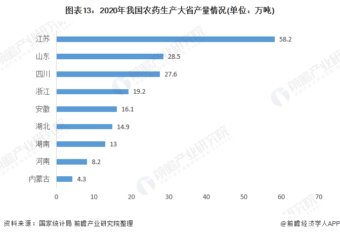 1、区域竞争:江苏省农药产量最多