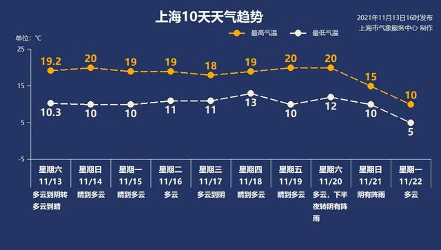 气温走成“平行线”,基本在10~20度之间。