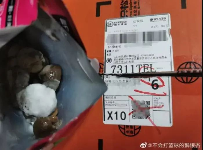 11月3日,网友“不会打篮球的醉银杏”发文称,“10月9号淘宝三只松鼠旗舰店买的,10月11号收到货,11月3日拆开最后一袋零食就是板栗,发现发霉长毛了