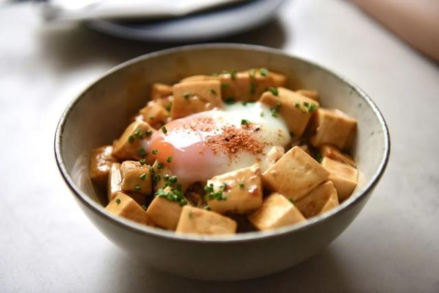 当52度温泉蛋遇见麻婆豆腐,都是最温柔的存在,这双重米饭杀手,让人味蕾全开。豆腐嫩滑却不碎,覆盖在米饭上,鲜香汁水渗入其中,将温泉蛋与麻婆豆腐搅拌开来,轻松干了这碗饭,满满幸福的滋味。