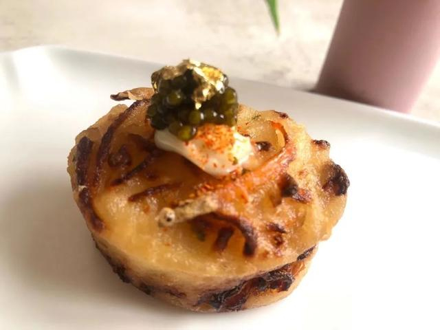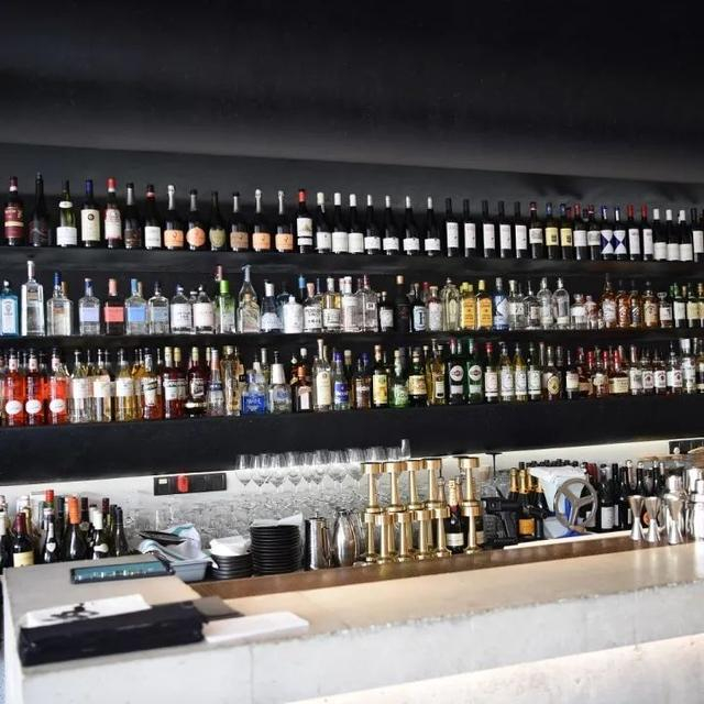 隐藏菜单听名字有点吓人的:鱼子酱金箔油墩子。其实是一只售价38元的小只油墩子,我就馋里面的萝卜丝,夜深的时候,还有个地方可以吃到油墩子。这个餐厅到了夜晚就变成了酒吧,一整面墙的美酒,入夜快乐!