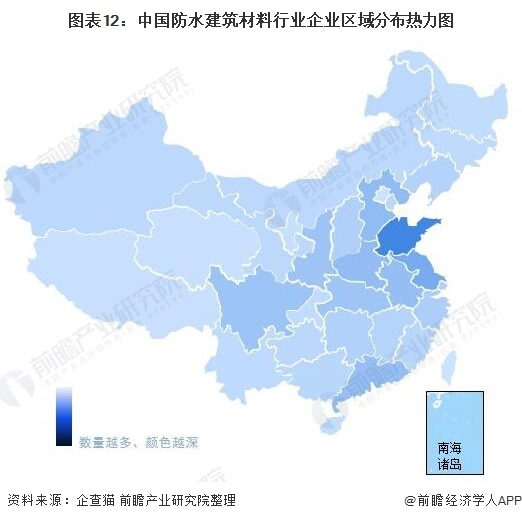 1、区域竞争:区域分布相对集中,山东省防水建筑材料生产企业较多