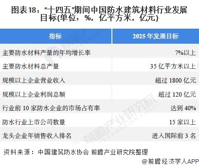 2、到2025年主要防水材料总产量将达到35亿平方米以上,规模以上企业营业收入超过1800亿元
