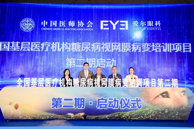 活动现场,中国医师协会、中国医师协会公卫医师分会主办,由爱尔眼科作为支持单位的 “全国基层医疗机构糖尿病视网膜病变培训项目” 发布了阶段性工作成果。项目目前已在全国15个城市开展,覆盖了600多家基层医疗机构的近2000名医务人员。随后第二期全国基层医疗机构糖尿病视网膜病变培训项目也正式启动。