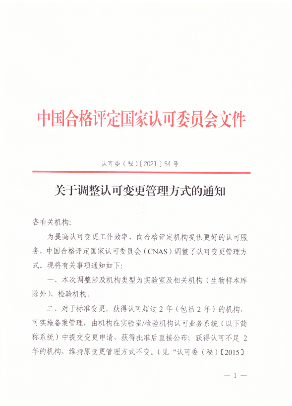 中国质量新闻网讯 近日,中国合格评定国家认可委员会发布关于CNAS调整认可变更管理方式的通知。