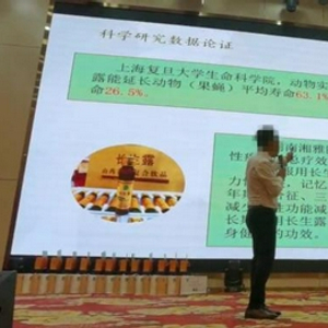 中国质量新闻网的调查人员参加了此次会议。其间,发现相关人员在宣传和介绍时,“每天一支长生露,终生不得癌”“可以延长人的寿命26.5%”等蛊惑性的词句频现,且参会者多为中老年人;在“会后会”的环节发现,产品运营模式涉嫌多层次团队计酬问题,“赚个几百万上千万”等类似语句也不时出现。