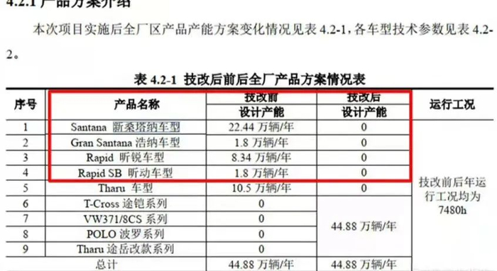 近日,一份上汽大众扬州仪征工厂2022—2023年车型技术改造项目计划书在网上流传。其显示,新桑塔纳、桑塔纳·浩纳、昕锐、昕动、途岳5款车型在进行技术改造后设计产能为0,而这部分产能将转投上汽大众旗下的途铠、VW371/8CS、Polo、改款途岳4款车型。