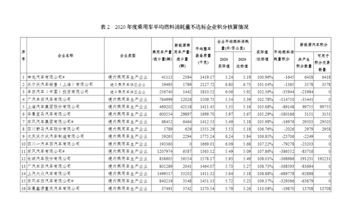 据工信部、市场监管总局等部门发布的公告统计,2020年规定的平均燃料消耗量(升/百公里)达标值为5.18L,上汽大众最终的每百公里油耗为5.64L,并不达标。生产的汽车油耗高于油耗标准时,就会获得一个负积分。而每一个产生的油耗负积分均需要由新能源汽车积分来进行抵扣,而上汽大众的新能源汽车积分和燃油积分均为负分,无法自我抵扣。