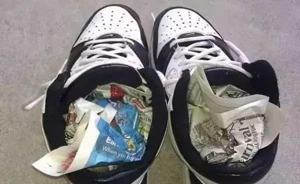 不穿的鞋子存放时,有时会因受到挤压变形褶皱,可将报纸揉成团塞鞋子内,既可以防潮除湿,又可以防止鞋子变形。