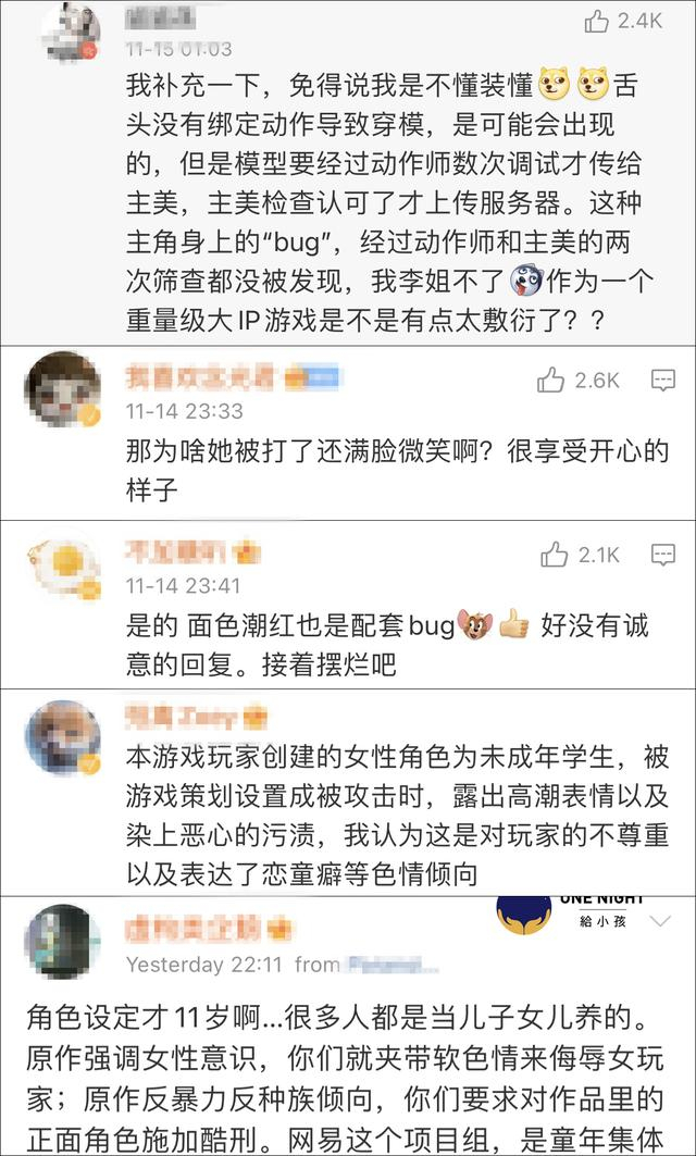 还有玩家称,不仅是吐舌问题,有些游戏角色年龄设定低,受击后表情令人不适。