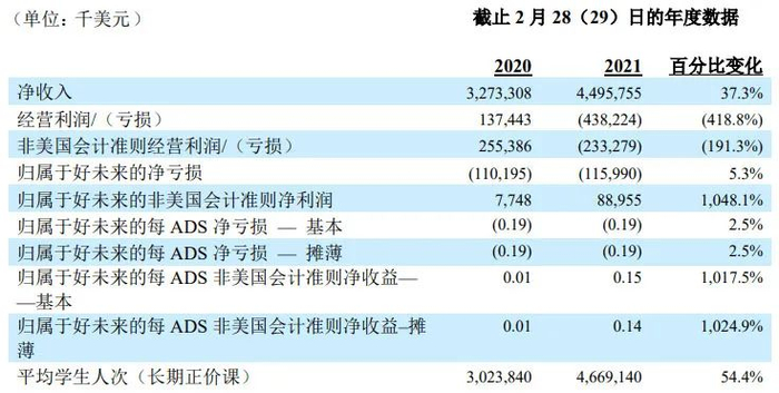 其最近的披露为2021财年Q4(2020.12-2021.2),3个月收入为13.63亿美金,核心业务为学而思培优、学而思网校以及主打1对1的学而思·爱智康,分别占比53%、32%、6%,三者均落在K9学科类业务,相加后,占比在91%。