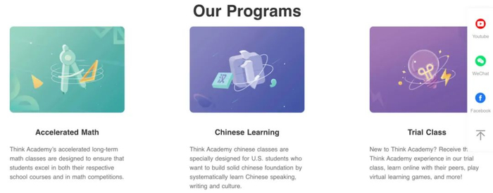 Think Academy官网显示提供数学、中文课程以及试听课
