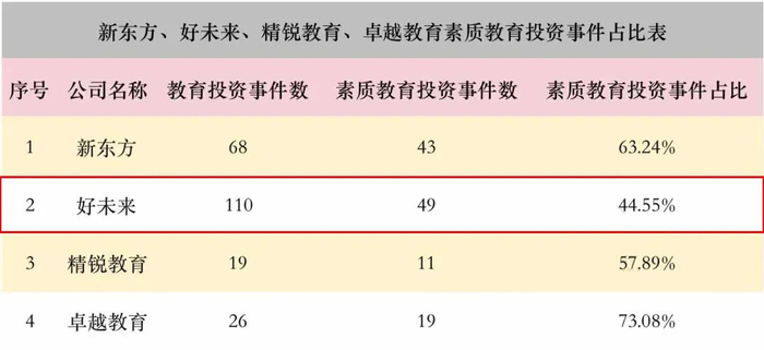 值得一提的是,好未来2012年起即投资素质教育领域。
