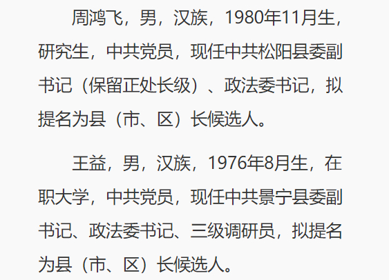 公示中有2人拟任市委书记,2人拟提名为市长候选人。
