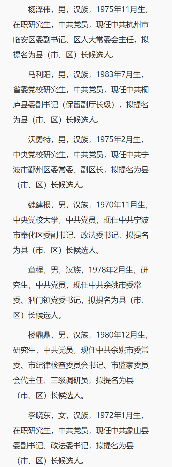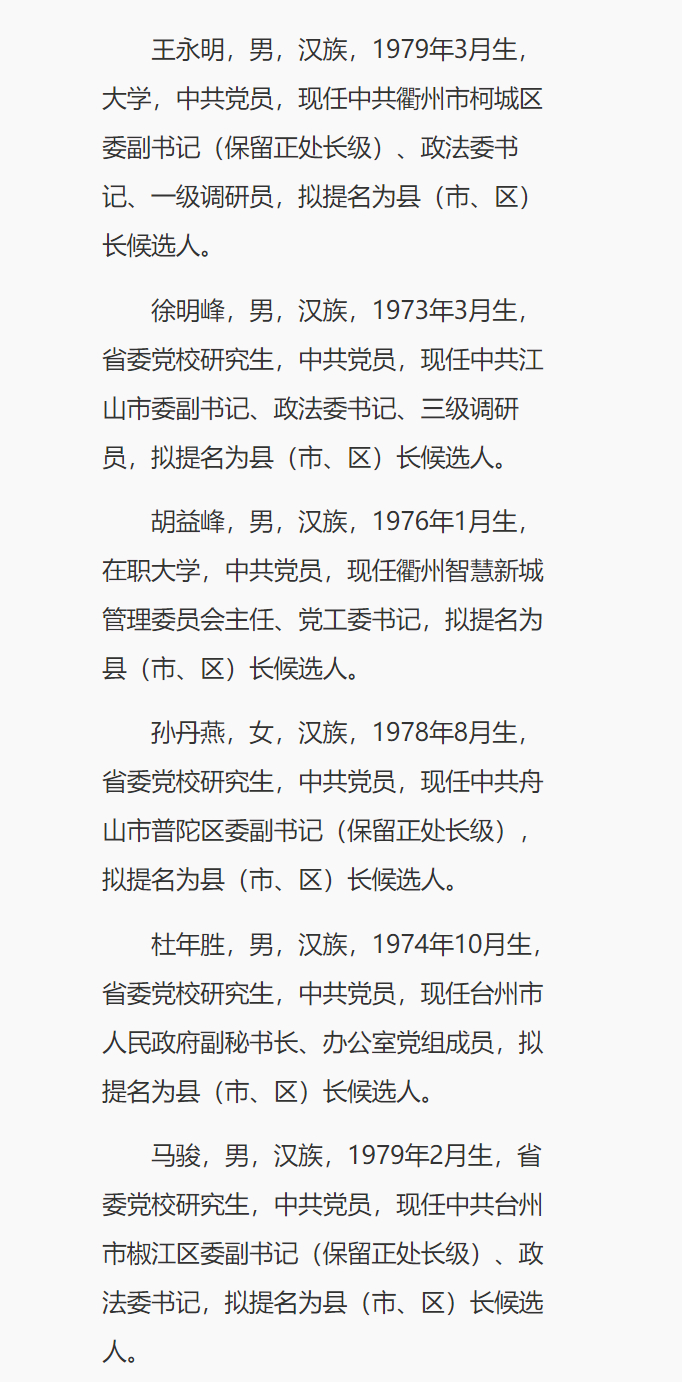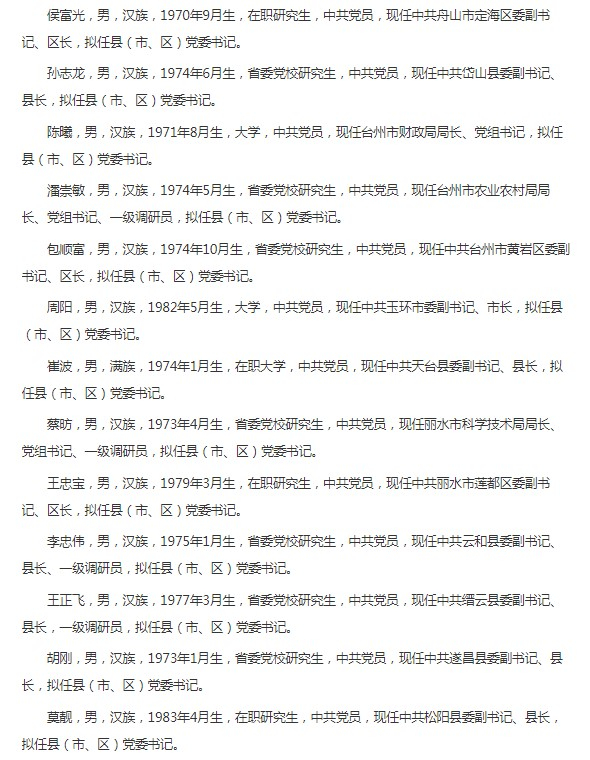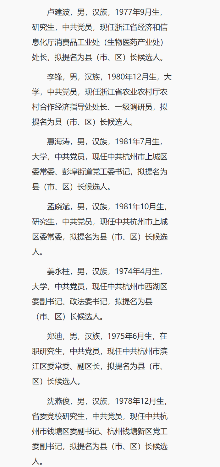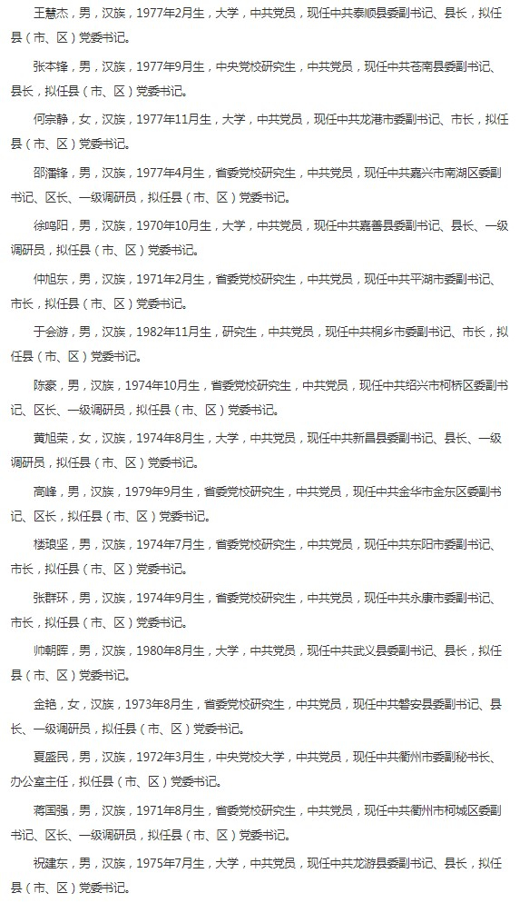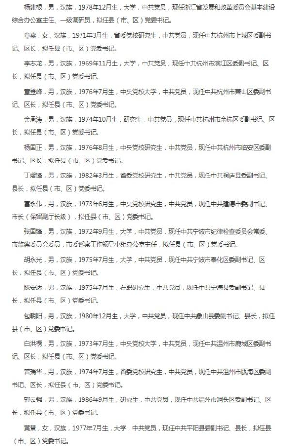 据浙江新闻客户端11月15日消息,中共浙江省委组织部发布《浙江省拟提拔任用省管领导干部任前公示通告》。