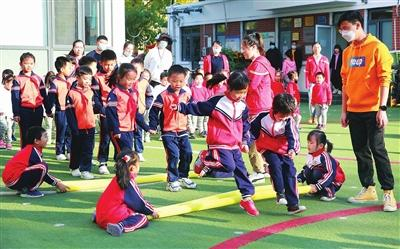 和平区第五幼与岳阳道小学携手,助力幼小衔接,开展“中华传统体育游戏”活动。