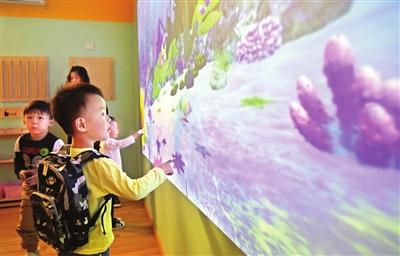 红桥区第二十四幼多媒体互动区,让孩子们在亲身参与的过程中,了解升入小学后的相关知识。