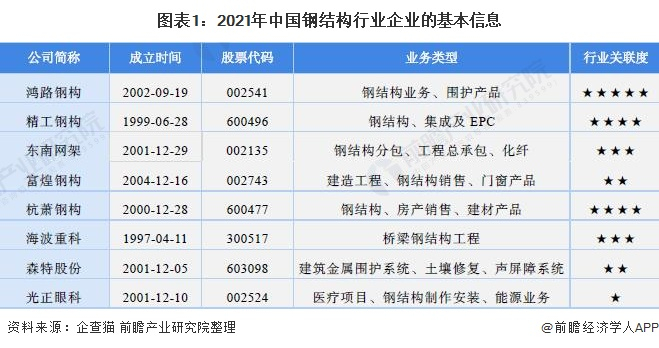 钢结构行业主要公司:目前国内钢结构行业的上市公司主要鸿路钢构(002541)、精工钢构(600496)、富煌钢构(002743)、东南网架(002135)、杭萧钢构(600477)等