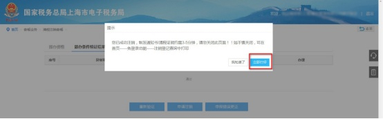 针对不符合即办资格的纳税人,及注销原因为“依法合并”、“依法分立”的纳税人,可在所有强制类未办结事项办结后,通过【申请注销】按钮,发起一般注销流程,经审核后完成注销。