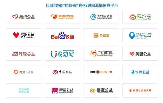 截止目前,加上已有的腾讯公益,淘宝公益,美团公益,新浪公益,滴滴公益等平台,民政部共指定慈善组织互联网募捐信息平台32家。