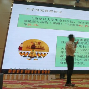 中国质量新闻网的调查人员参加了此次会议。其间,发现相关人员在宣传和介绍时,“每天一支长生露,终生不得癌”“可以延长人的寿命26.5%”等蛊惑性的词句频现,且参会者多为中老年人;在“会后会”的环节发现,产品运营模式涉嫌多层次团队计酬问题,“赚个几百万上千万”等类似语句也不时出现。