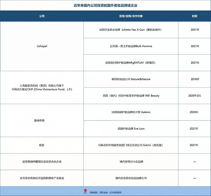 另据青眼梳理发现,相比此前国际美妆公司占主导,大肆收购中国美妆品牌,近年来,不少中国企业通过收购/入股,以及设立产业基金等方式,在海外开启“买买买”模式,成为美妆资本界新玩家。