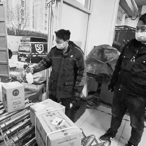 11月15日傍晚5时,北京顺丰速运有限公司运河经营分部杨庄速运营业点运来了最后一车货。拉好传送带,十几位快递员分列两旁,开始当天最后一班的分拣任务。再过一小时,这些快递就将送到收件人手中。快递即将卸车,快递员王兆波拿着灌满消毒液的喷壶站在传送带最前面。他仔细地消杀完放在传送带上的每一件快递后,才放心让同事接触。