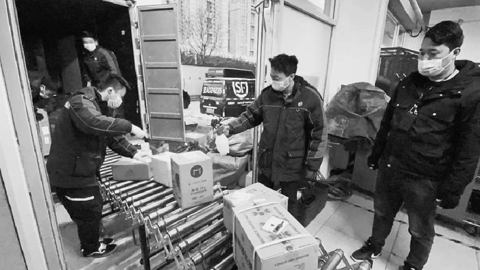 “能不能帮忙拆开包装消消毒我再带走?”来取件的刘女士问。“没问题!”说着,工作人员付品正撕开快递外包装,一把园艺铲子露了出来。付品正仔细地在铲子上喷上酒精后,才递给刘女士,随后将快递袋塞进驿站一角专门存放快递包装的大袋子里。