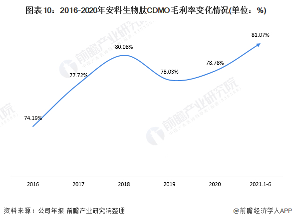 从毛利率上看,2016-2020年,安科生物毛利率整体呈现出波动态势,但仍保持在较高水平;2020年,安科生物肽CDMO毛利率仍达78.78%,企业盈利状况较为可观。