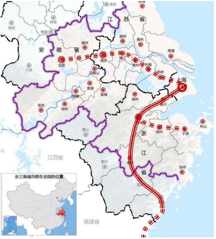 长三角一体化国家战略背景下,超前谋划长三角600公里/小时高速磁浮交通体系,加快启动沪杭磁悬浮项目建设,并谋划向丽水大花园区域延伸,将丽水纳入长三角一体化的高速磁浮体系,推动丽水全面融入长三角“半小时交通圈”,促进杭丽、沪丽同城化发展,营造“工作在沪杭、生活休闲在丽水”的未来高品质出行服务。