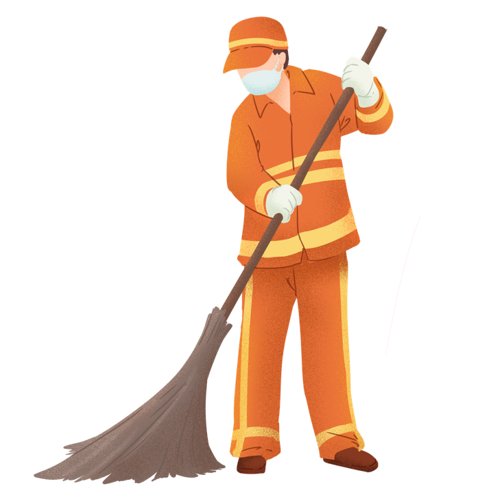 一手拿扫把 一手拿画笔