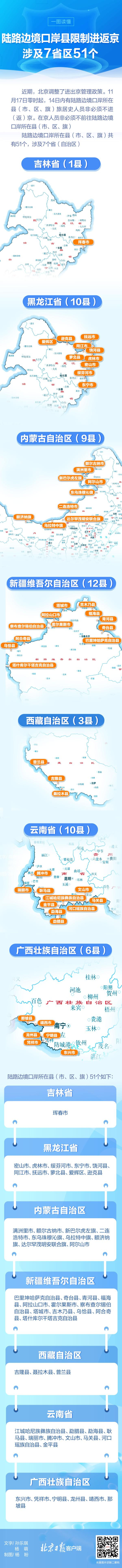 原标题:7省区51个陆路边境口岸所在县(市、区、旗),执行限制进返京管控措施 来源:上观新闻