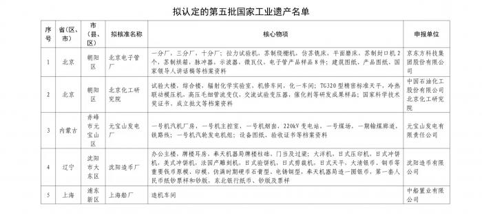 11月16日,国家工信部产业政策与法规司在工信部网站上公布了拟认定的第五批国家工业遗产名单(下称拟认定名单),从即日起至11月23日予以公示。