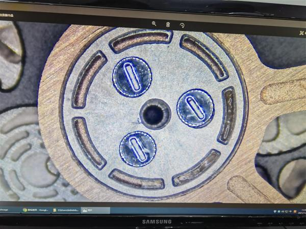 一款假冒奢侈品腕表被光学显微镜发现背面的特制螺丝竟然是粘纸。