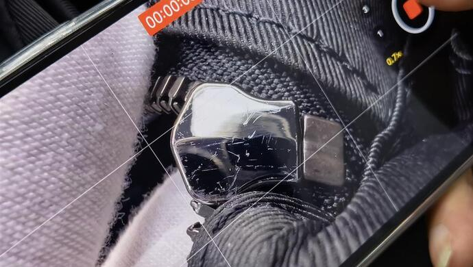 一款lv的双肩包,各方面细节都很完善,可鉴定师用普通手机的微距功能放大其拉链头后,立刻判断:“这是高仿品”。原因在于该拉链头内侧有拉丝,而参考同款产品细节,定制的拉链头内侧相当平滑。再将这款包放在日光灯下不同角度观察,可以发现灰色花纹略微泛粉,也不是真品该有的颜色。
