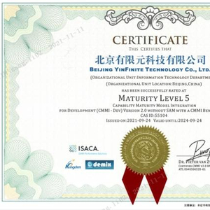 近日,北京中关村科金技术有限公司(简称“中关村科金”)旗下子公司北京有限元科技有限公司(简称“有限元”)顺利通过全球软件领域难度最大、规格最高的软件开发能力成熟度认证CMMI5,并获得CMMI5级证书。