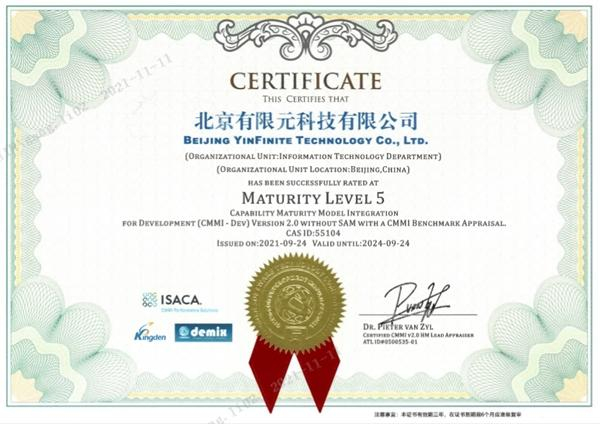 全球软件最高等级认证!中关村科金旗下有限元荣获CMMI5 国际认证