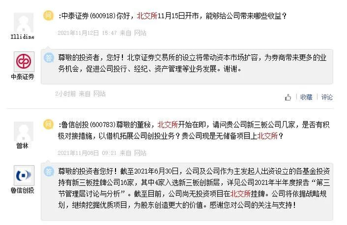 除了对子公司在北交所上市的计划,创投及券商类上市公司自身对北交所业务的规划,同样引起投资者的关注,多家券商被问及相关布局。